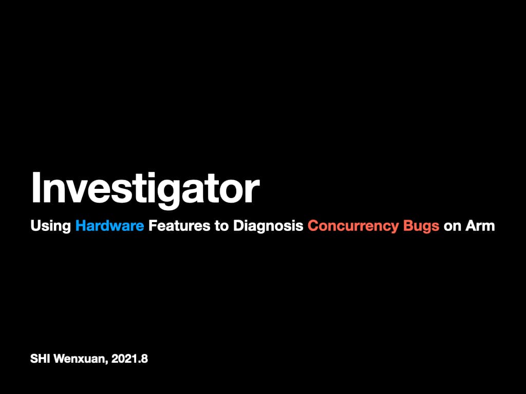 Now I am going to introduce our recent work. We call it "Investigator". Investigator uses hardware features to diagnose concurrency bugs on Arm.