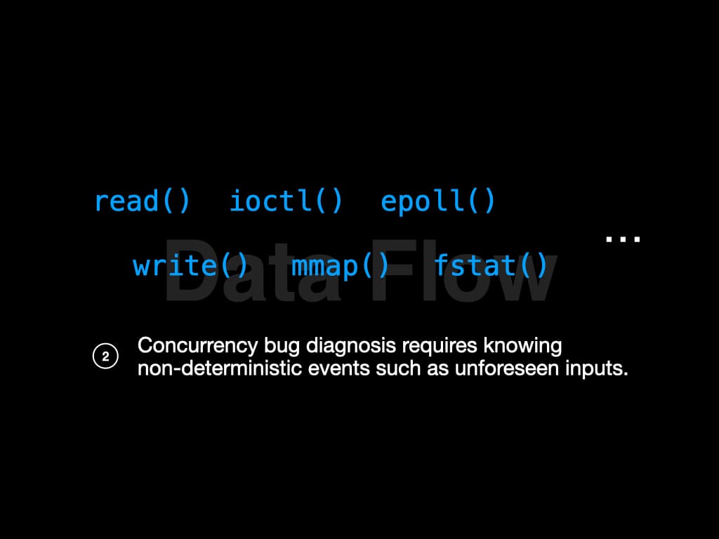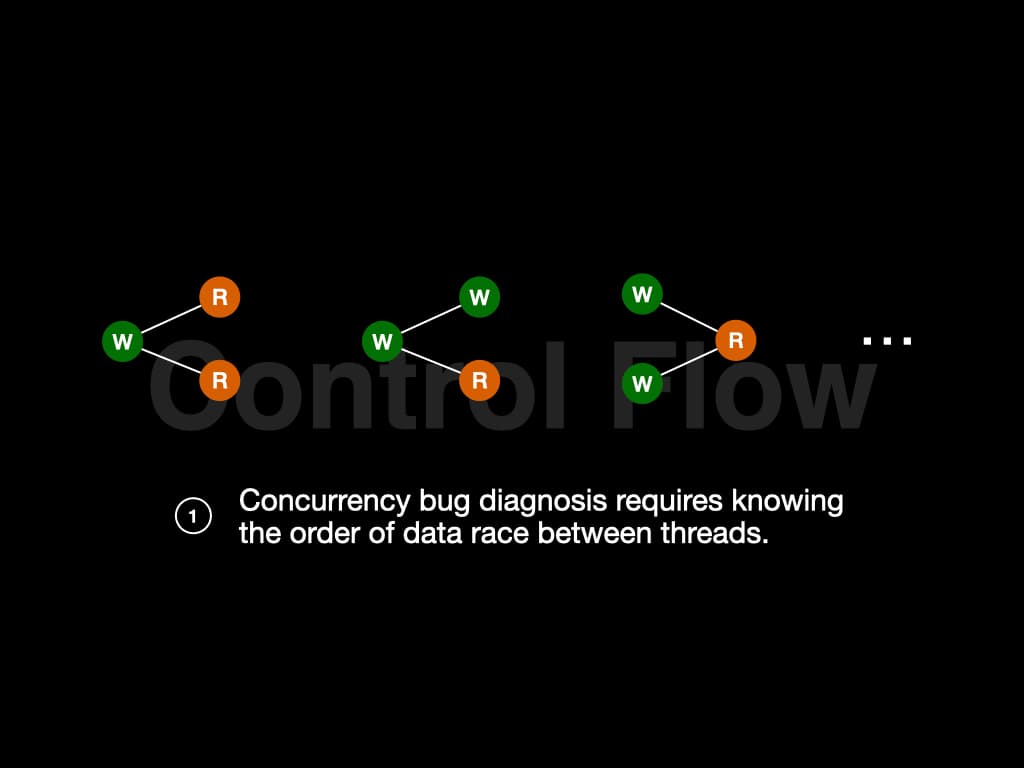 Recall that concurrency bug diagnosis requires knowing the control flow and the data flow—there are many challenges to get this information with low overhead.