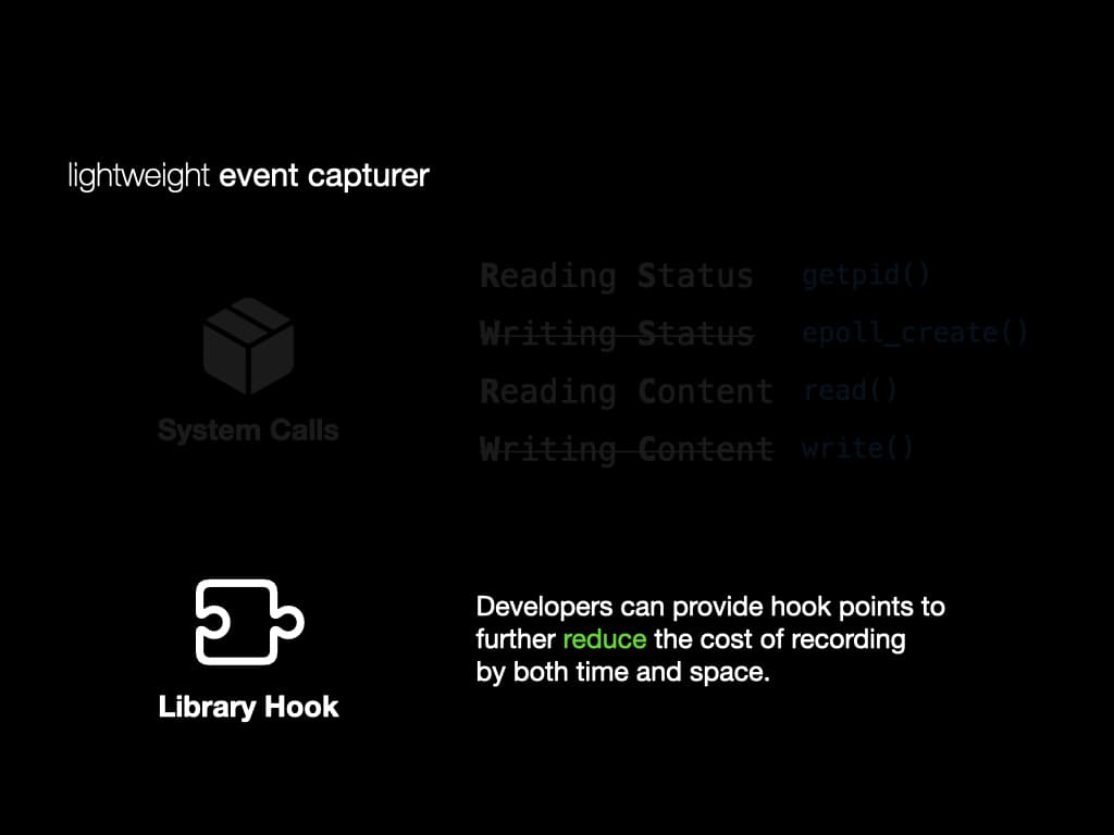 Developers can also provide their own hook to reduce the cost of recording further. (We also show how to do it in the long-term experiment)