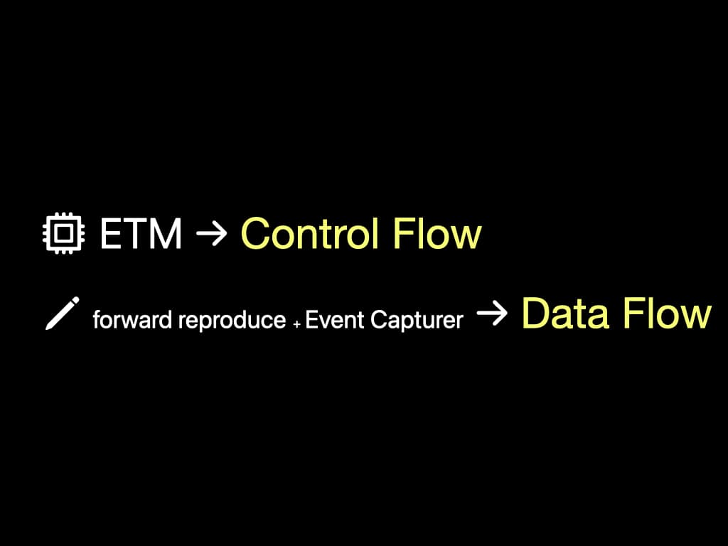 In summary, we use ETM to generate the control flow. We use forward reproduction and a lightweight event capturer to build the data flow.