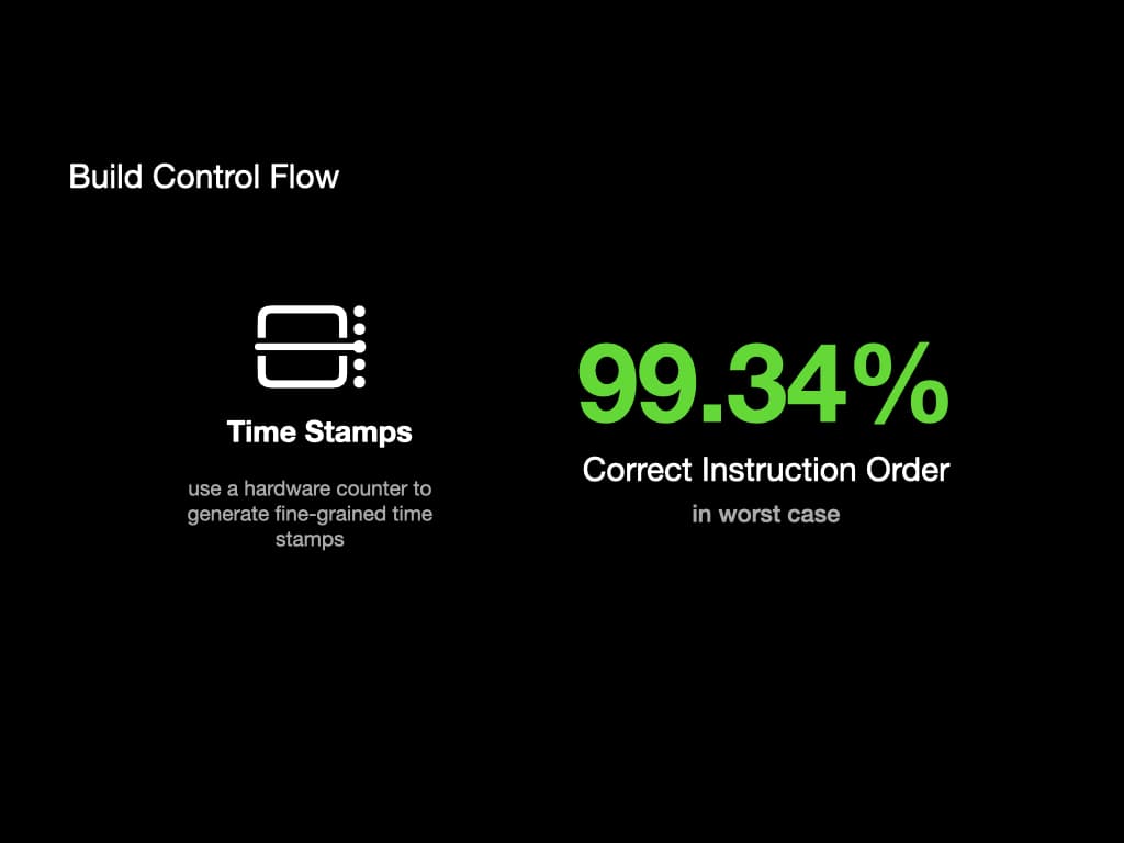 Our solution is to use the "counter" hardware to generate as many timestamps as possible to make it precise enough. In our test, 99.34% of instructions can be recorded in the correct order, in the worst case where data race happens.