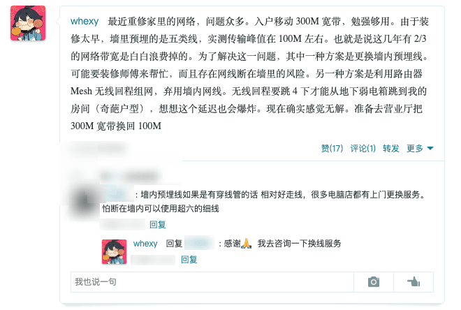 至于换线这件事,因为我家这种复式户型里布线全是墙内直角弯,很容易在重新布线的时候把原来的线扯断。所以暂时不考虑。