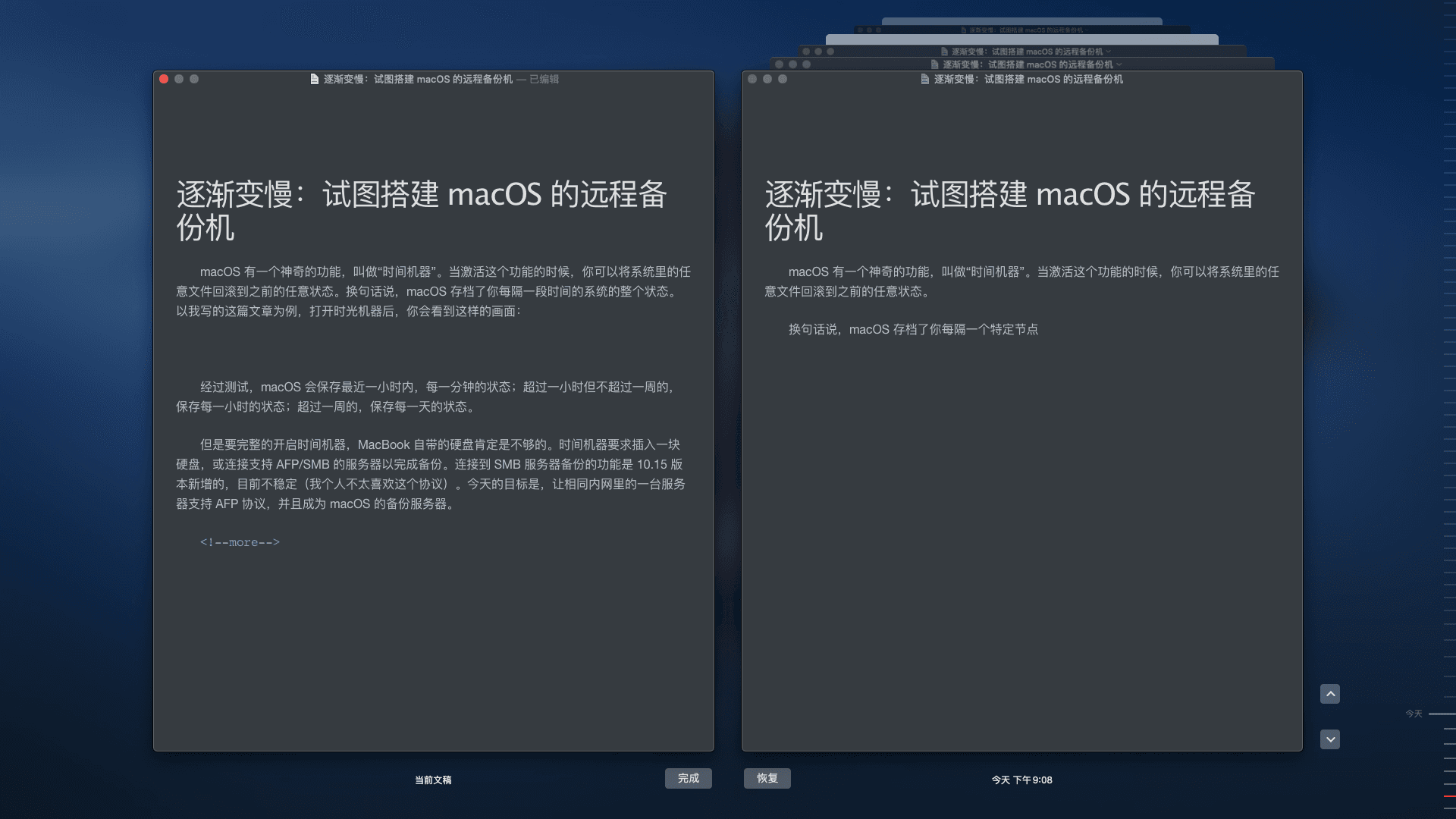 以我写的这篇文章为例,打开时光机器后,你会看到这样的画面: